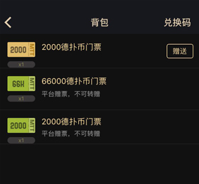 门票在个人背包中,用户可以通过门票或者德扑币报名参加赛事。部分门票配有有效期,在有效期后门票会自动消失。
