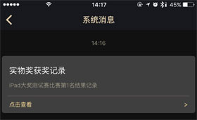 当玩家在实物奖的赛事中获得了实物奖励,在系统消息处不仅会发送给玩家赛事结果,还会发送让玩家填写个人信息的获奖通知,玩家在获奖信息中填写个人资料,即可获得赛事赢得的实物奖品。